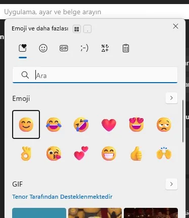 Eğer güncel bir Windows 11 işletim sistemi kullanıyorsanız klavyeden Windows Tuşu ve . (nokta) tuşlarına aynı anda bastığınızda açılan küçük pencereden kullanmak istediğiniz emojiyi seçip yazınıza ekleyebilirsiniz.